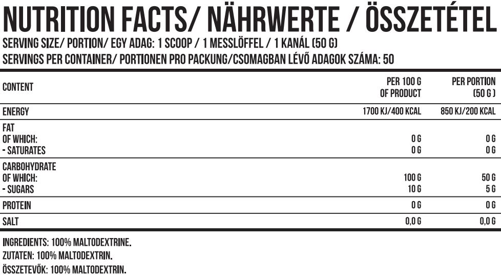 #MuscleFuel enthält 100% Maltodextrin. Es ist günstig, hochwertig und als neutralen Geschmack erhältlich.